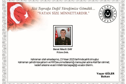 Milli Savunma Bakanlığı (MSB),Pençe-Kilit operasyon bölgesinde görev yapan Piyade Uzman Onbaşı Berat Mecit Day’ın, teröristlerin saldırısı sonucu ağır yaralandığını ve yapılan tüm müdahalelere rağmen kurtarılamayarak şehit olduğunu açıkladı.