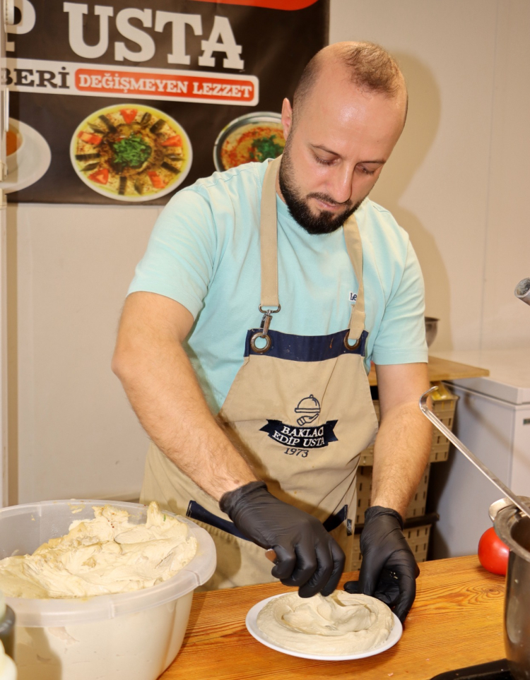 Ramazan ayıyla birlikte yoğunluk yaşadıklarını dile getiren Kılıç, “Humusumuz orijinal Antakya usulüne göre hazırlanıyor. Malzeme kalitesi ve kıvam bizim için en önemli unsurlar. Aileden devraldığımız tarifi bozmadan üretim yapıyoruz. Klasik sunumun yanı sıra çam fıstıklı ve yumurtalı çeşitlerimiz de bulunuyor. Tüm ürünlerimizi Antakya’ya özgü tereyağıyla servis ediyoruz” dedi.