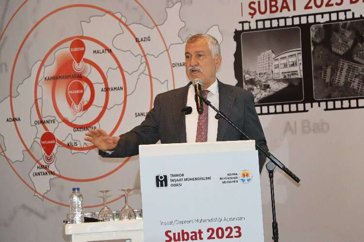 “Deprem değil; binalar, yapılar öldürür. İşte bugün burada; İnşaat Mühendisleri Odamız ve Adana Büyükşehir Belediyesi işbirliği ile düzenlediğimiz sempozyumda, bu olumsuz bilançonun nedenlerini, bilim insanlarının, mühendislerin – mimarların – şehir plancılarının çözüm önerilerini ortaya çıkarmaya çalışacağız. Tüm katılımcılara, Adana halkına tekrar hoş geldiniz diyor, üç gün sürecek olan Şubat 2023 Depremleri Sempozyumunun, amacına yönelik çalışmalar ortaya koymasını diliyorum. İnsan hayatı değerlidir, siyasetçinin oy kaygısına, sermayenin kar hırsına, niteliksiz mühendislik hizmetine, denetimsizliğe terk edilemez.”