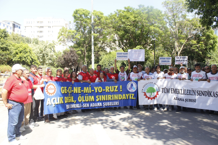 Adana TÜM Emekliler Sendikası Adana Şubesi İnönü Parkı’nda bir araya gelerek taleplerini dile getirdi. Basın açıklamasında çok sayıda emekli vatandaş ve basın mensupları katıldı. Katılanlar adına basın açıklamasını Tüm Emeklilerin Sendikası Adana Şube Başkanı Yener Pirim okudu. Başkan Yener Pirim, emeklilerin yaşadığı zorluklara dikkat çekerek, emeklilik sisteminin yeniden düzenlenmesi çağrıda bulunarak, “Emeklilik sistemi sosyal tarafların uzlaşısıyla yeniden düzenlenmeli. Emekliler, günümüzde açlık sınırının çok altında kalan maaşlarla geçinmeye çalışıyor” dedi.