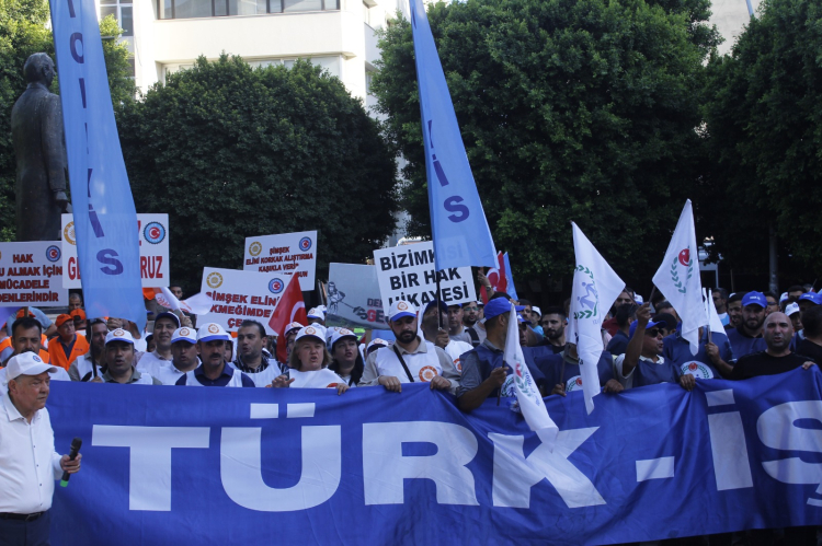 Türk-İş, toplu iş sözleşmesi sürecinde hükümetin teklif ettiği zam oranlarını yetersiz bularak Adana’da işçilerle bir araya geldi.