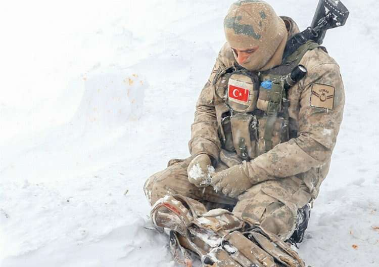 Van'da bir askerin şehit olan arkadaşından kalan yeleğiyle çalışmaları izlediği fotoğraf yürekleri dağlamıştı.