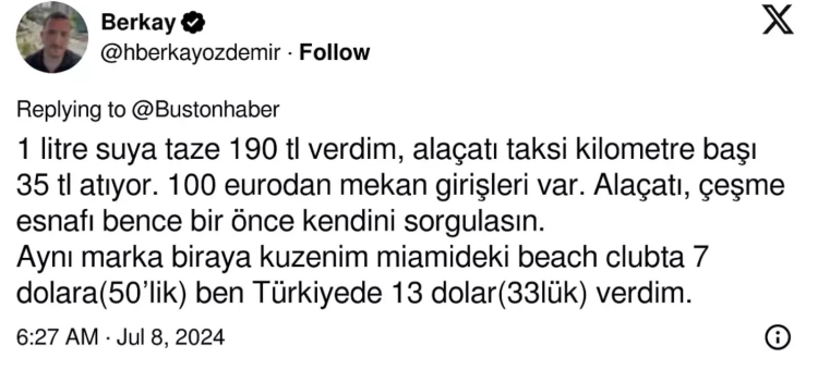 Son yıllarda giderek yükselenkonaklama ve hizmet fiyatları, Türkiye'yi Avrupa'nın en pahalı tatil destinasyonlarından biri haline getirirken, özellikle Yunanistan'dan gelen adisyonlar, tatilciler arasında ciddi bir tepkiyle karşılanıyor. Tatilciler, bu durumu "kazıklanma" hissi olarak nitelendiriyor ve alternatif tatil bölgelerine yöneliyor.