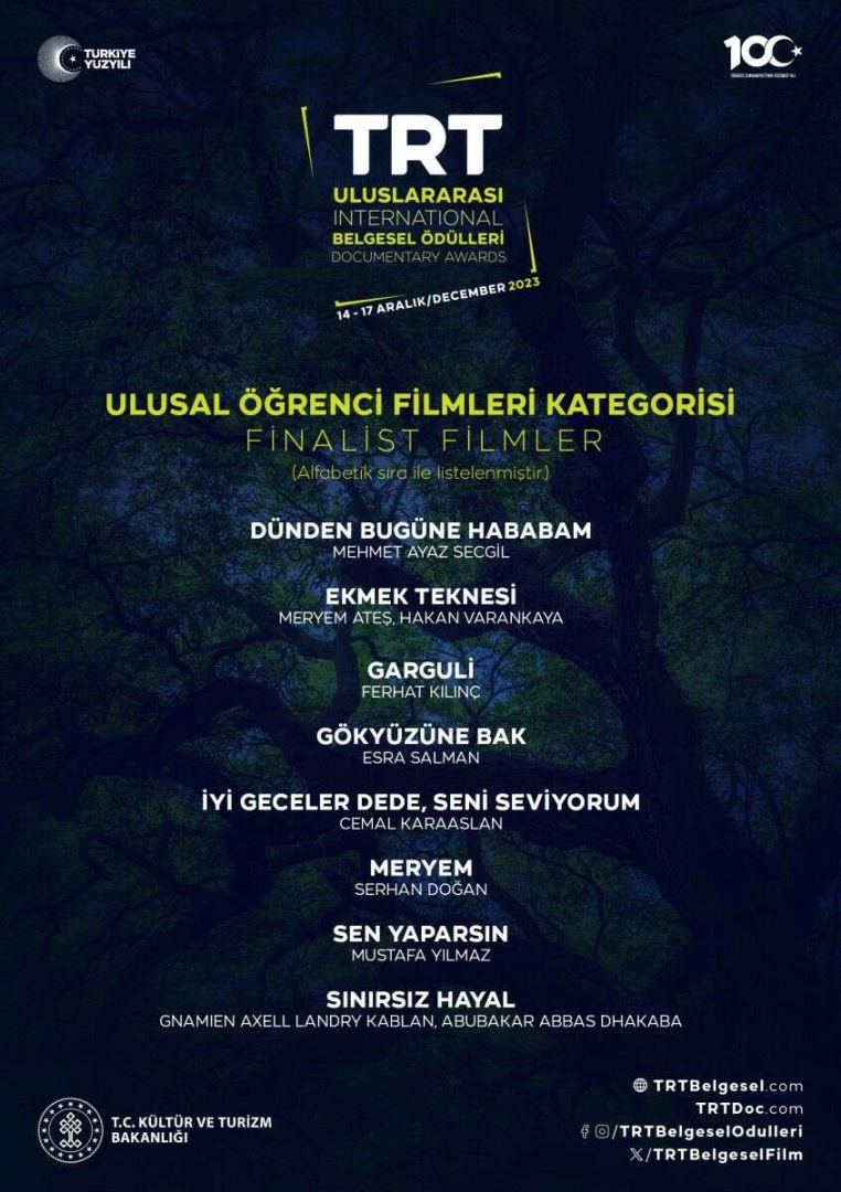 14. Uluslararası TRT Belgesel Ödülleri finalistleri belli oldu. Cumhuriyetin 100. yılından esinlenerek düzenlenen yarışmada, "Köklü izler, güçlü hikayeler" temasıyla toplamda 12 projeye ödül verilecek. Ayrıca Cumhuriyet’in 100. yılı dolayısıyla "100. Yıl Özel Ödülü" de sahibini bulacak.
