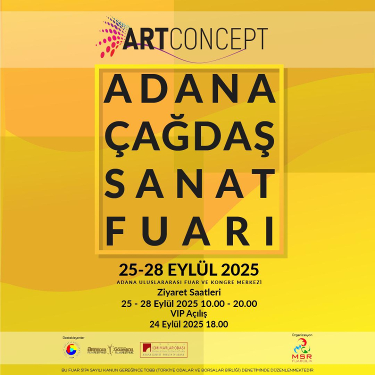 Adana, kültür ve sanat dünyasında tarihi bir buluşmaya ev sahipliği yapmaya hazırlanıyor. Bu yıl ilk kez düzenlenecek ARTCONCEPT – Adana Çağdaş Sanat Fuarı, 25-28 Eylül 2025 tarihleri arasında Adana Uluslararası Fuar ve Kongre Merkezi'nde sanatseverlerle buluşacak.