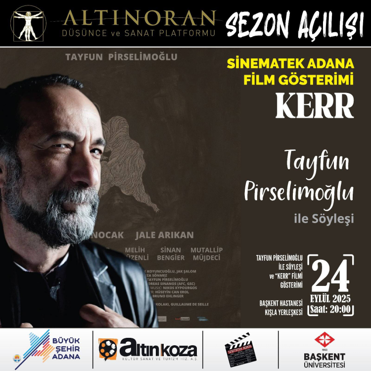 Sezonun açılışı, Altınoran ve Sinematek Adana iş birliğiyle, yönetmen Tayfun Pirselimoğlu’nun “Kerr” filmi ile yapılacak. Pirselimoğlu ve filmin oyuncuları da gösterime katılarak izleyicilerle film üzerine söyleşi gerçekleştirecek.