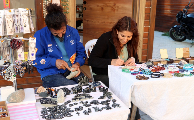 Özalp, şunları kaydetti: “Birçok sanatçıyı bir araya getiren çarşımız bizim için umut oldu. Burada yeniden üretmeye başladım. 12 yıldır yanımda olan eşim en büyük yardımcım. Serpantin taşı ustalığını babamdan öğrendim, şimdi de oğluma aktarıyorum. Oğlum derslerinden arta kalan zamanlarda bize katılıyor. Daha yolun başında ama çok yetenekli. İnanıyorum ki çok iyi bir usta olacak.”