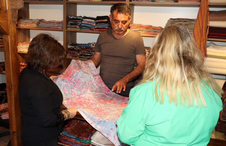 Sosyal medyada aktif bir şekilde ürün tanıtımı yaptıklarını belirten Eskiocak, saf ipek kumaş üzerine Ebru Sanatı ile hazırladıkları özel çalışmaların da büyük ilgi gördüğünü ifade etti.