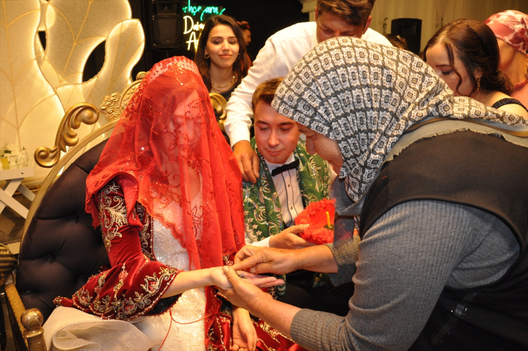 İlçedeki bir düğün salonunda davul ve zurna eşliğinde oynayan Bobae Lee ve İsmail Asker, gönüllerince eğlendi. Kına yakılan Güney Koreli gelin, bereket ve bolluk getirdiği inancıyla içinde para ve şeker olan toprak testiyi kırdı.