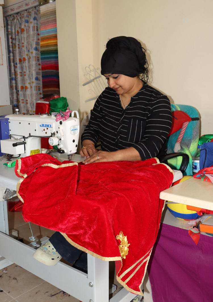 Büyük depremin ardından Antakya Bağrıyanık’taki atölyesinden ayrılmak zorunda kalan Gülbin Gedik, şimdi Akasya Mahallesi’ndeki yeni atölyesinde tek başına çalışmalarına devam ediyor. Depremin izlerini, işine olan sevgisi ve tutkusuyla hafifleten Gedik, “Kostüm dikmek bana terapi gibi geliyor. Çocukların yüzündeki gülümsemeyi görmek, bana en büyük mutluluğu yaşatıyor” diyerek mesleğine olan bağlılığını vurguluyor.