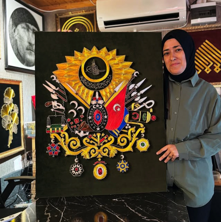 Sanatçı Alev Konç, iplik sanatı olarak bilinen String Art alanındaki üretimleriyle adından söz ettirmeyi sürdürüyor. Soyut kompozisyonların yanı sıra gerçekçi portre çalışmalarıyla da tanınan Konç, son çalışmasında Hatay Valiliği’nin kurumsal logosunu bu özgün teknikle yeniden yorumladı.