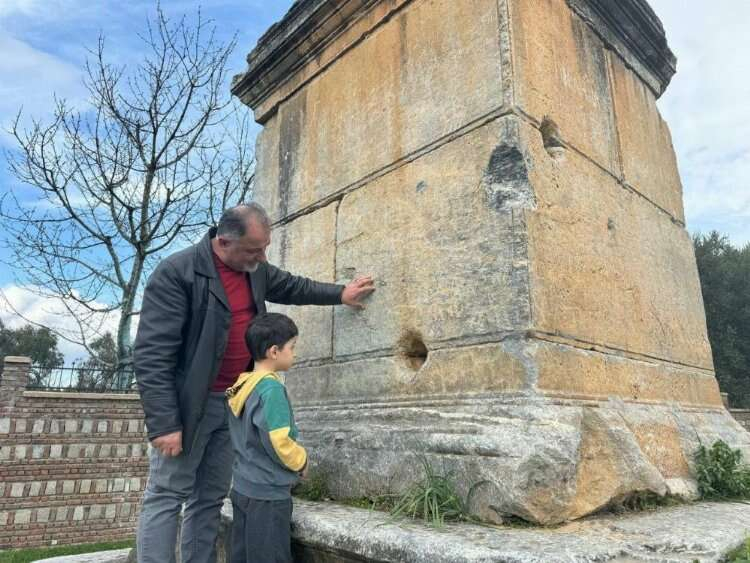 İznik'teki 2 bin yıllık Roma Dönemi dikilitaşı şeftali bahçelerinin arasında ayakta