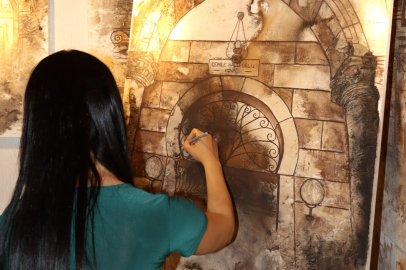 Ressam Esra Sönmez, sanatsal çalışmalarında alışılmışın dışında bir malzeme kullanarak dikkat çekiyor. Sönmez, tuvaline boya yerine kahveyi taşıyarak, "bir fincan kahvenin kırk yıl hatırı" atasözüne atıfla, eserlerine derin bir anlam katıyor. Sanatçının özellikle 6 Şubat 2023'te meydana gelen ve "asrın felaketi" olarak adlandırılan depremde yıkılan Antakya kapılarını konu alan tabloları, büyük bir ilgiyle karşılanıyor.
