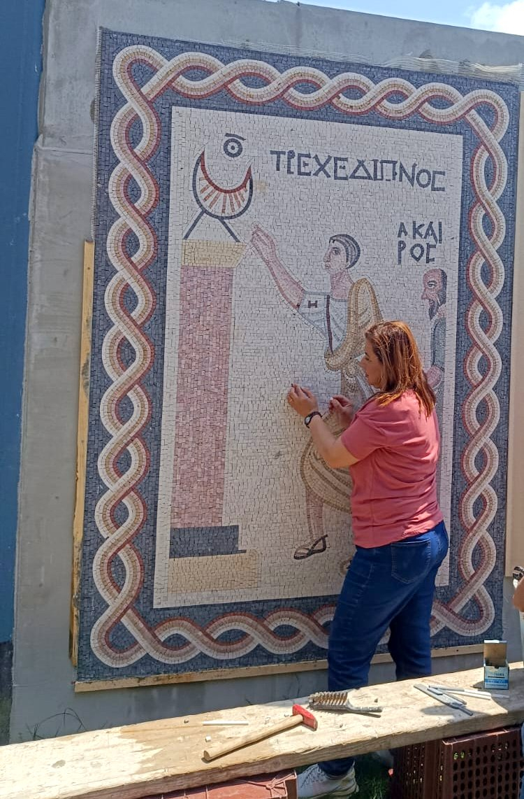 Kentte 16 yıldır mozaik sanatıyla uğraşan ve bu alanda önemli eserlere imza atan Sultanoğlu, yeni çalışmasında Antiocheia Antik Kenti'nin bilinen Grekçe olan "Neşeli Ol, Hayatını Yaşa" ifadesinin yer aldığı tarihi mozaiği yeniden yorumladı. Bu anlamlı eserin hemen yanına ise, akşam yemeğine yetişmek için koşturan bir Romalı figürü ustalıkla işlendi. İki eserin birleşimi, gastronomi temasıyla bütünleşerek çarşıya eşsiz bir hava kattı.