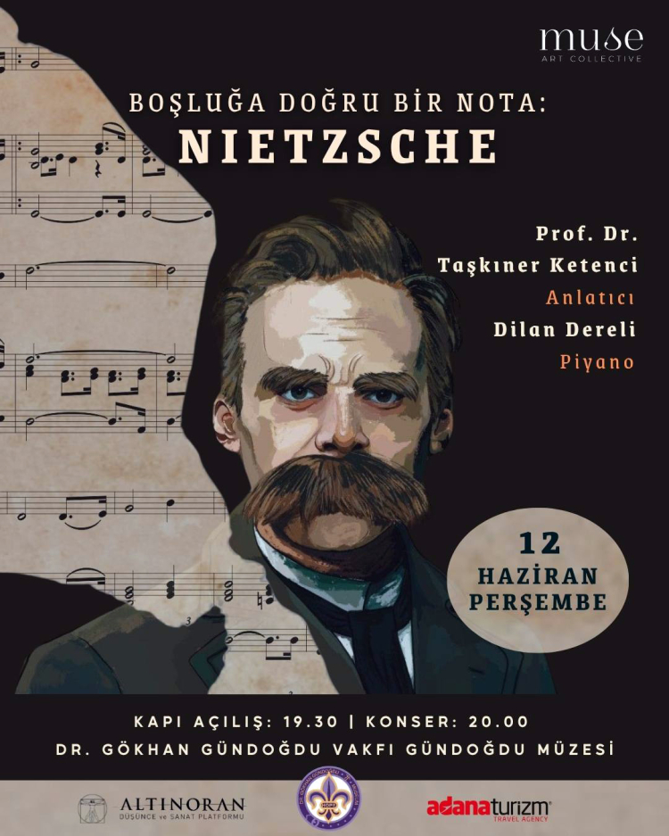 Muse Art Collectıve’in düzenlediği etkinlikte, Nietzsche’nin piyano eserleri Prof. Dr. Taşkıner Ketenci’nin anlatımı ve Piyanist Dilan Dereli’nin yorumuyla Adanalı sanatseverlerle buluşacak.