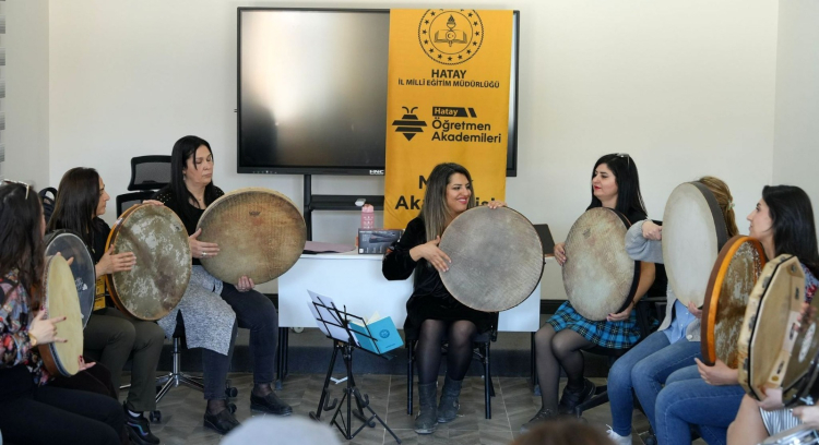 Hatay İl Milli Eğitim Müdürlüğü tarafından yürütülen Hatay Öğretmen Akademileri kapsamında düzenlenen Müzik Akademisi, yedinci etkinliğini “Ritim ve Müzik” temasıyla gerçekleştirdi. Kültür ve Sanat Çarşısı’nda yoğun ilgi gören bu keyifli buluşma, öğretmenleri müziğin büyüleyici dünyasıyla bir araya getirdi.