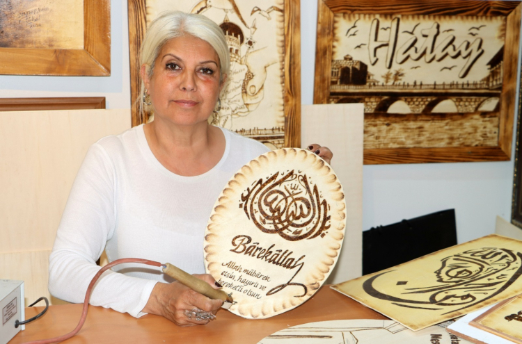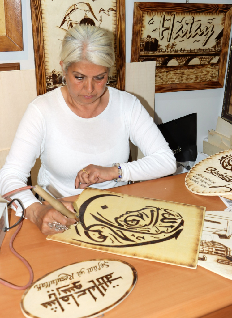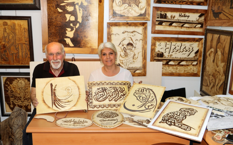 Sanatseverler, Zeynep & Naim Gülbol çiftinin Antakya’daki Kültür ve Sanat Çarşısı’ndaki atölyesinden özel tasarım yakma resimler sipariş ediyor.
