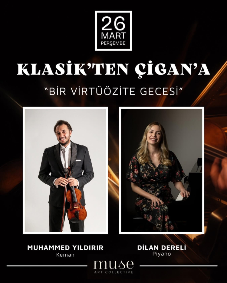 Konserde, virtüözitesi ve güçlü sahne performansıyla tanınan Muhammed Yıldırır kemanı, zarif müzikalitesi ve duyarlı yorumuyla Dilan Dereli ise piyanoyu çalacak. Tutku, teknik ustalık ve özgür ritimlerin bir arada parlayacağı gece, sanatseverler için uzun bir aradan sonra özel bir buluşma niteliği taşıyor.