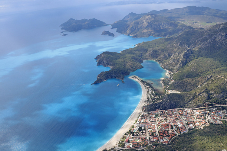 Muğla’nın Fethiye ilçesinde bulunan Ölüdeniz, turkuaz rengi suları ve durgun deniziyle dünyanın en ünlü plajlarından biridir. Lagün yapısı sayesinde yılın büyük bölümünde dalgasız olan Ölüdeniz, özellikle Belcekız Plajı ve Babadağ’dan yapılan yamaç paraşütüyle uluslararası turizmde büyük bir üne sahiptir.