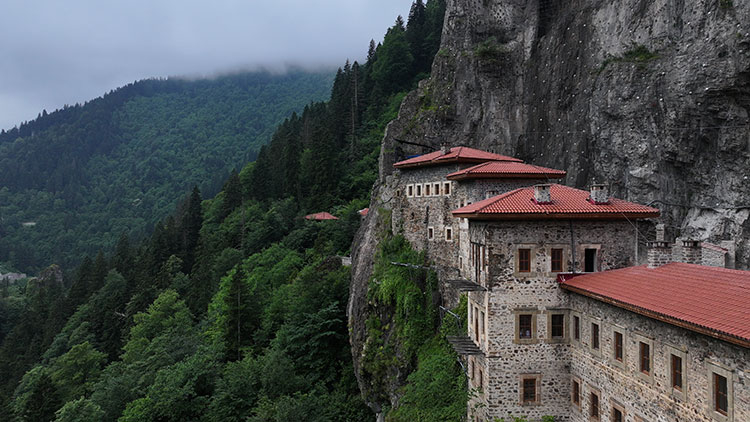Trabzon’un Maçka ilçesinde, Karadağ’ın sarp yamaçlarına inşa edilmiş olan Sümela Manastırı, 1600 yıllık geçmişiyle Türkiye’nin en önemli tarihi ve dini yapılarından biridir. Mağara kilisesi, freskleri, su kemeri ve manastır kompleksini oluşturan çok katlı yapılarıyla dikkat çeker.