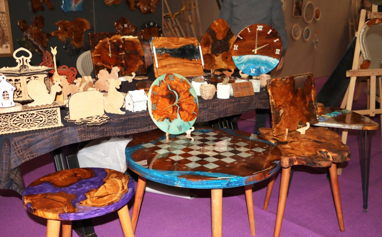 Fuarın öne çıkan çalışmaları arasında yer alan zeytin ağacından üretilmiş doğal formlu duvar saatleri, el işçiliği ve tasarım estetiğiyle beğeni topladı. Kahve sunum tepsilerinde epoksi içerisine yerleştirilen gerçek kahve çekirdekleri ise detaylara verilen önemi gözler önüne serdi. Bunun yanı sıra epoksi ile şekillendirilen satranç takımları ve sehpalar da ziyaretçilerin en çok ilgi gösterdiği ürünler arasında yer aldı.