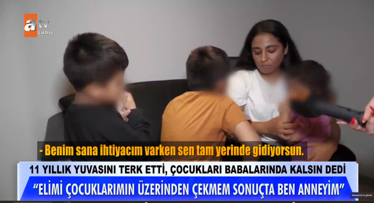 ATV’de yayınlanan Müge Anlı ile Tatlı Sert programında bugün yürek burkan bir aile dramı ekranlara geldi. Zeynep Ataş isimli kadın, 11 yıllık evliliğini terk edip üç çocuğunu geride bıraktı. Canlı yayında konuşan Ataş, çocuklarını bakamayacağını belirterek “Babalarında kalırlarsa bana ailesi göstermez, o yüzden yuvaya gitsinler” sözleriyle izleyenleri şoke etti.