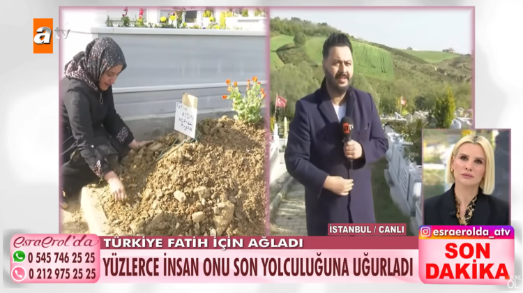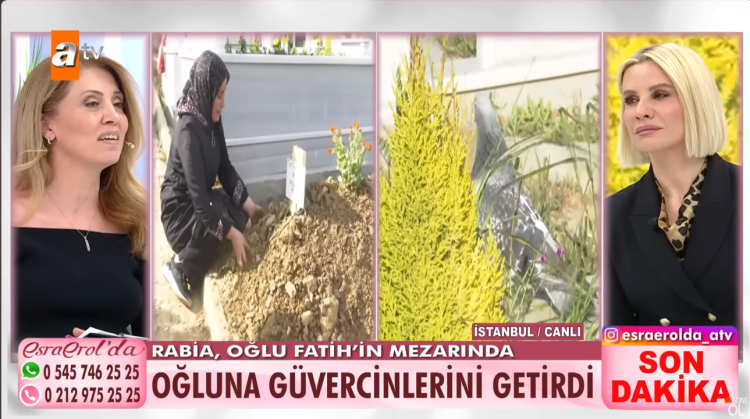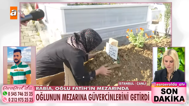 Aydın için Halkalı Merkez Camii’nde cenaze namazı kılındıktan sonra, naaşı Kayabaşı Mezarlığı’na defnedildi. Yaşanan acı olayın ardından Esra Erol’un programında bugün duygusal anlar yaşandı. Programa katılan anne Rabia Aydın, oğlunun mezarı başına giderek canlı yayında gözyaşları içinde özür diledi.