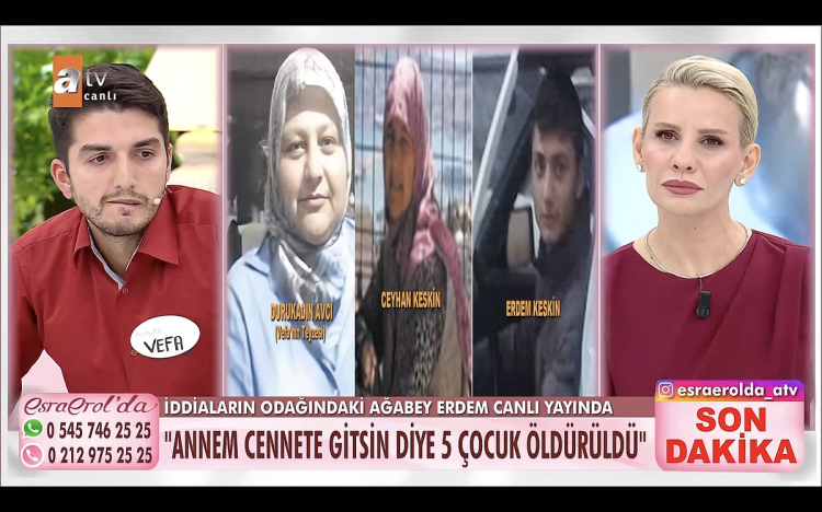 Esra Erol'un sunduğu ATV ekranlarının sevilen programında gündem sarsan bir olay yaşandı. Vefa, ailesinin yaşadığı dehşet verici olayları anlatırken, babasının ve annesinin uyguladığı korkutucu manipülasyonları açıkladı. Vefa, "Cennete gitmek için çocuklarını öldürdüler" sözleriyle izleyenleri şaşkına çeviren bir itirafta bulundu. Aile içindeki psikolojik şiddet, doğumların evde gerçekleştirildiği iddiaları ve 5 çocuğun hayatını kaybettiği vahşi süreç ekranlara damga vurdu.