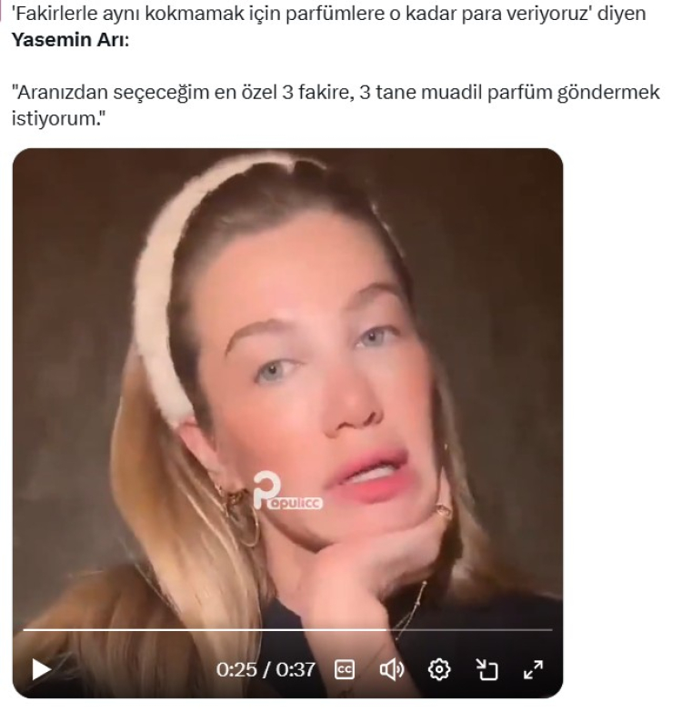 Yasemin Arı’nın son dönemde en çok konuşulan nedeni, pahalı parfümler hakkında konuşurken kullandığı ifade oldu. Viral olan videoda Arı’nın “Fakir gibi kokmak istemiyorum” sözleri, sosyal medyada büyük tepki topladı.