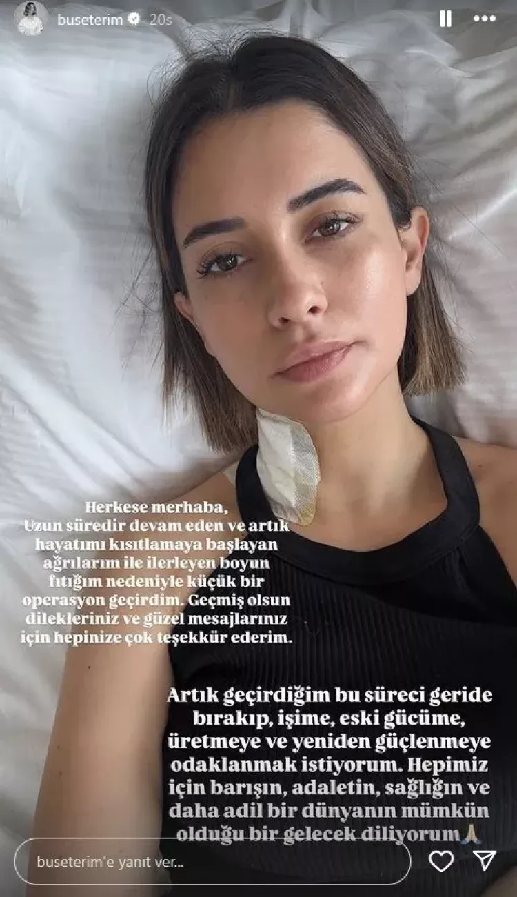 Takipçilerinin merakla beklediği açıklama nihayet geldi. İki çocuk annesi Buse Terim, Instagram hesabından yaptığı paylaşımla boyun fıtığı ameliyatı geçirdiğini duyurdu.