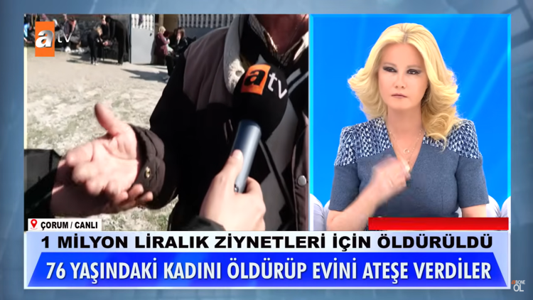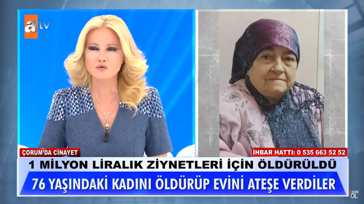 “76 yaşındaki bir kadına bunu nasıl yapabilirsiniz? Zavallım, zavallım diye kocası ağlıyor… Bu nasıl bir gözü dönmüşlük? Bu kadın herkesin annesi, teyzesi gibi durmuyor mu?” sözleriyle yaşanan olaya tepki gösteren Anlı, katillerin bir an önce bulunması gerektiğini vurguladı.