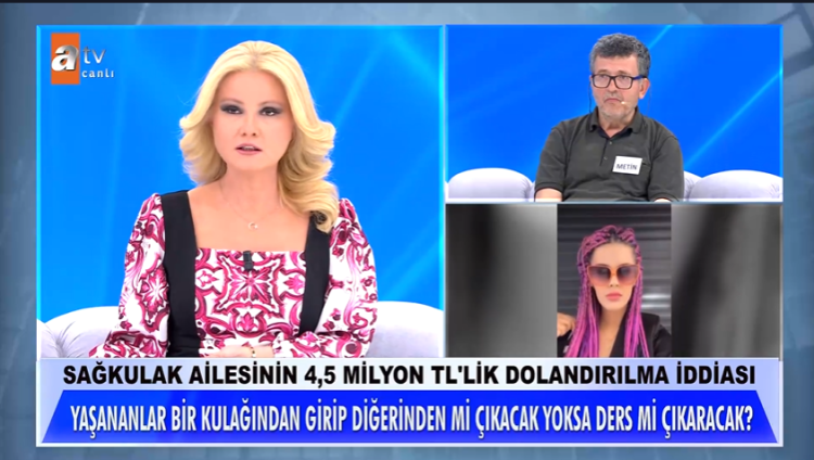 ATV ekranlarında yayınlanan Müge Anlı ile Tatlı Sert programı, yine gündeme bomba gibi düşen bir dolandırıcılık olayıyla izleyiciyi ekran başına kilitledi. 3 çocuk babası Metin Sağkulak, kendisini doktor olarak tanıtan sosyal medya fenomeni Mekselina İlkbahar tarafından tam 4.5 milyon TL dolandırıldığını iddia ederek canlı yayına katıldı.
