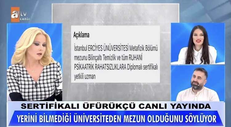 Ülkemizde "üfürükçü" olayları maalesef son bulmuyor. Son olarak, Müge Anlı'da yayınlanan bir hikaye, izleyenleri hayrete düşürdü. Gazmalı Rahman Hoca adlı üfürükçü tarafından dolandırıldıklarını iddia eden Dağıstan ve Habibe çifti, 15-17 bin Euro arası bir miktarın kendilerinden alındığını belirtti. Üfürükçü, çifti "üç harfliler"den (cinler) olduğuna inandırarak, bir dizi para talep etmişti. Ancak olayın en dikkat çekici kısmı, Rahman Hoca'nın büyü yaparkenki görüntülerinin yayına verilmesiydi.