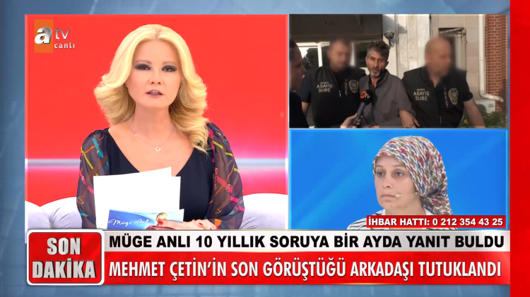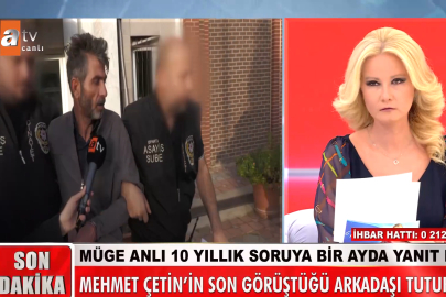 Isparta’da 10 yıl önce kaybolan Mehmet Çetin’in esrarengiz kaybı, Müge Anlı’nın canlı yayını sayesinde aydınlandı. Eski eş adli kontrolle serbest kalırken, arkadaşına yönelik “kasten adam öldürme” suçlamasıyla tutuklama kararı çıktı. Canlı yayında yaşanan itiraflar ve tehditler gündemi salladı.