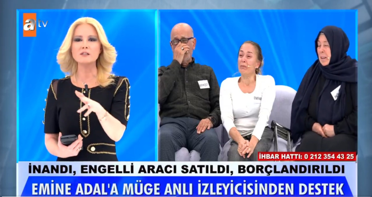 Yüzde 60 engelli Emine Adal, günler süren kayıp sürecinin ardından Müge Anlı'nın programında ailesiyle buluştu. Eski eşinden yaşadığı zorlukları ve mağduriyetini paylaşan Emine’nin hikayesi izleyicileri derinden etkiledi.