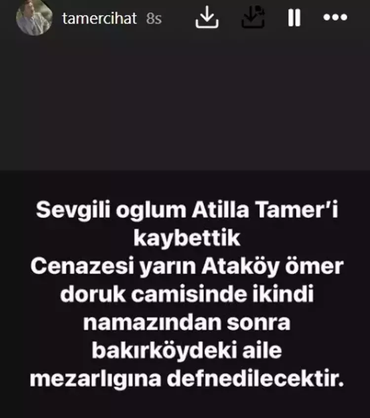 Bir süredir tedavi gören Atilla Tamer'in durumu, son günlerde ağırlaşmıştı. Cihat Tamer, sosyal medya hesabından yaptığı paylaşımla oğlunun vefat haberini sevenleriyle paylaştı. Usta oyuncu, "Sevgili oğlum Atilla Tamer'i kaybettik" diyerek yaşadığı derin üzüntüyü dile getirdi.