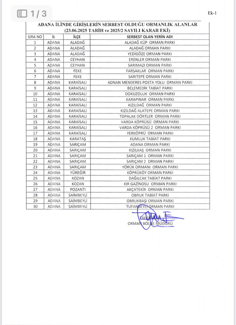 Adana Valiliği’nin duyurusunda, tamamen yasak kapsamına alınan ormanlık bölgelerle birlikte, halkın yoğun olarak kullandığı mesire ve piknik alanlarına ilişkin düzenlemelere de yer verildi. Yasak kapsamına girmeyen belirli mesire alanlarının kontrollü şekilde kullanılabileceği belirtildi. Bu alanlarda ateş yakmak ve mangal yapmak gibi faaliyetlerin ise sıkı şekilde denetleneceği ifade edildi.