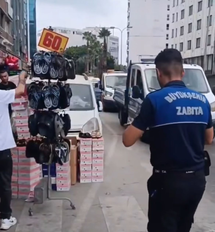 Adana’da zabıta ekipleri, kaldırım işgali yapmaya çalışanlara göz açtırmadı