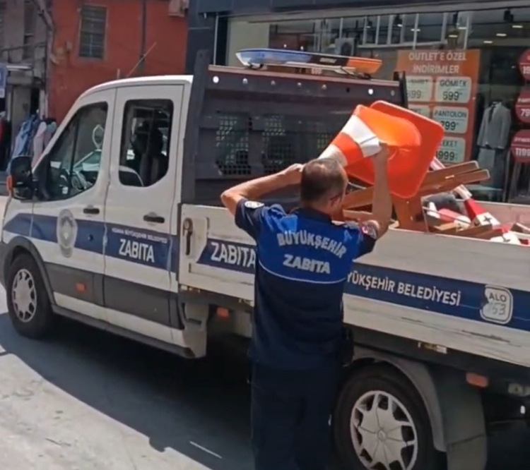 Adana Büyükşehir Belediyesi Zabıta ekipleri, Abidinpaşa Caddesi’nde kaldırımlara ve yollara bırakılan duba, reklam panoları ve malzemeleri toplayarak yayaların geçişini kolaylaştırdı.