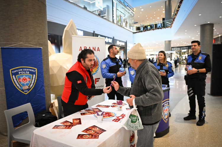 Adana İl Emniyet Müdürlüğü, AVM’lerde broşür dağıtarak vatandaşları dolandırıcılık, hırsızlık ve kapkaç gibi olaylara karşı bilinçlendirdi.