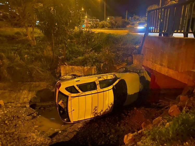 Otomobil sulama kanalına düştü, sürücü yara almadan kurtuldu
