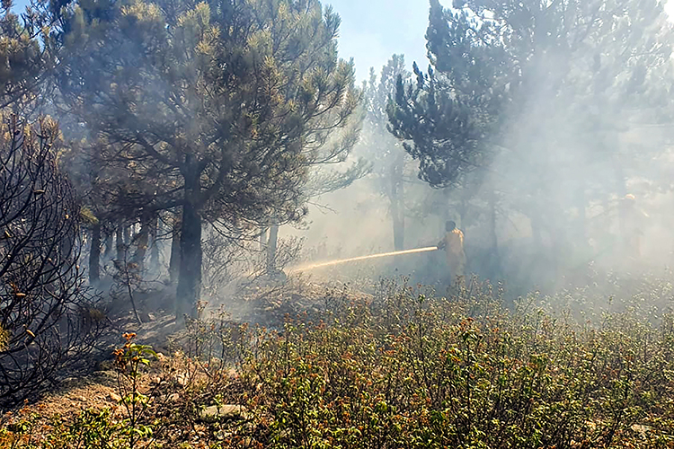 "İlk andan itibaren tüm kamu kurum ve kuruluşlarının, gerekli araç ve ekipmanlarıyla teyakkuz halinde olduğu yangına, 1 uçak, 1 helikopter, 22 arazöz ve itfaiye aracı, iş makinaları, dron ve diğer araçlar olmak üzere toplam 37 araç ve 97 personel ile havadan ve karadan müdahale sürmektedir. Yüksek hava sıcaklıklarının etkisini gösterdiği şu günlerde vatandaşların ormanlık alanlar başta olmak üzere piknik ve mesire alanlarında ateş yakılmaması ve yangına sebebiyet verecek her türlü olumsuz davranıştan kaçınılması hususunda hassasiyet göstermeleri önemle rica olunur."