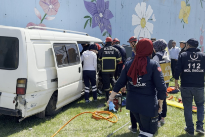 Aksaray'da seyir halinde lastiği patlayan minibüs kontrolden çıkarak önce refüje çıkıp sulama yapan belediye işçisine sonra da üst geçidin duvarına çarparak durabildi. Sürücünün sıkıştığı kazada 5 kişi yaralandı. Kaza, Yunus Emre Mahallesi 3. Bulvar üzerinde yaşandı. Edinilen bilgiye göre, Yunus Emre Mahallesinden şehir merkezi istikametine seyreden A.S. idaresindeki 68 MA 2183 plakalı minibüs, seyir halindeyken lastiğinin patlaması ve sürücüsünün direksiyon hakimiyetini kaybetmesi sonucu kontrolden çıkarak önce refüjdeki çim sulaması yapan İ.K. isimli belediye işçisine sonra da üst geçidin duvarına çarptı. Minibüs sürücüsünün direksiyon başında sıkıştığı kazayı gören diğer araç sürücüleri durumu 112 Acil Çağrı Merkezine bildirdi.