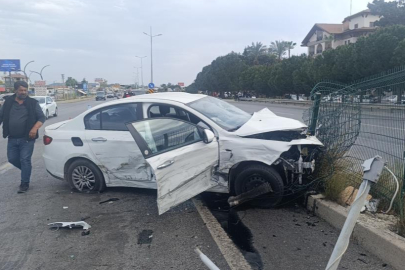 Antalya'nın Manavgat ilçesinde hafif ticari araçla çarpışan otomobil, trafik tabelası ve aydınlatma direğini altına alarak refüje çarptı. Kazada otomobil sürücüsü ve diğer araçta fenalaşan yaşlı kadın yaralandı.