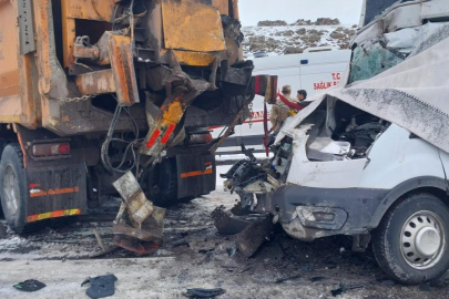 Ardahan-Kars kara yolunda kar küreme aracına çarpan kamyonette feci kaza