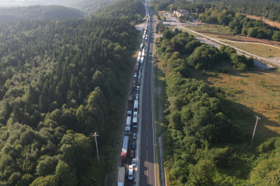 Bolu Dağı'nda sabah saatlerinde, 4 aracın karıştığı ve tırın otomobilin üzerine devrildiği kazada araçların kaldırılma çalışması trafik oluşturdu. Kilometrelerce uzunluktaki araç kuyruğu dron ile görüntülendi.
