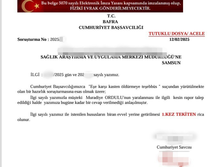 Samsun'un 19 Mayıs ilçesinde boşanma aşamasındaki kocası tarafından 5 yerinden bıçaklanarak ölümden dönen 3 çocuk annesi kadın, cezaevinde bulunan eşinin tahliye olarak tekrar kendisini öldürmeye kalkışmasından endişe ettiğini söyledi. Olay, 2 Ocak'ta 19 Mayıs ilçesi Cumhuriyet Mahallesi'nde meydana geldi. İddiaya göre, boşanma aşamasında olan ve hakkında uzaklaştırma kararı bulunan B. Ordulu (45), eşinin evde olmadığı sırada oğlundan anahtarları alarak eve girdi. Kapının arkasına saklanan koca, eşi Muradiye Ordulu (38) eve girdiği sırada tabancasını kafasına dayadı ve çıkan tartışmada eşini 5 yerinde bıçakla ağır yaraladı. B. Ordulu "eşe karşı kasten öldürmeye yönelik teşebbüs" suçundan tutuklandı. Muradiye Ordulu ise yoğun bakım ve hastane sürecinin ardından psikolojik destek alıyor.