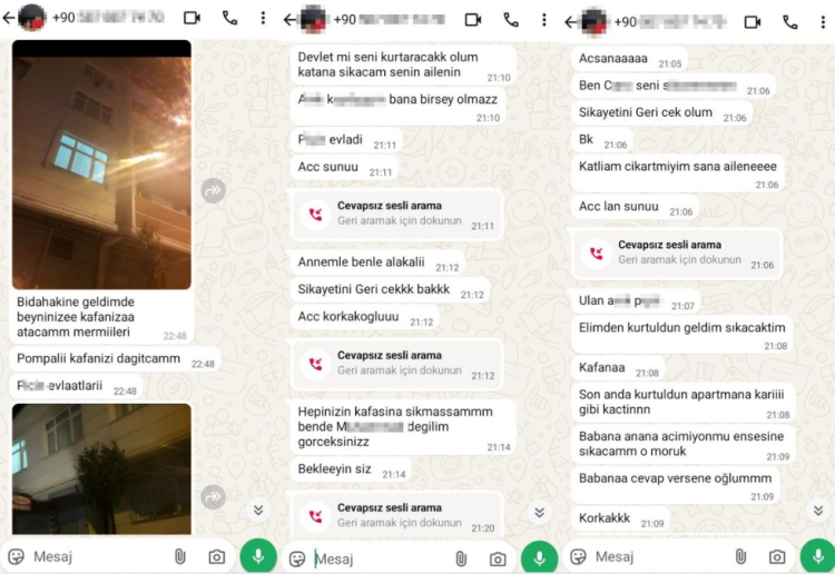 Yaşadığı olayı anlatan Ebubekir Baran "19 Şubat'ta eşimle tartışmamız sonucu çocuğu bırakıp gece yarısı evi terk etti. Ben ertesi günü işe giderken çocuğa bakması için annemi çağırdım. Eşim eve gelip annemi merdivenlerden itip darp etti ve çocuğu alıp annesine gitti. Daha sonra ben cenaze için memlekete gittim. Oradayken erkek kardeşi tarafından aranıp ağır küfürler ve ağır tehditlere maruz kaldım. Kardeşi bana eğer şikayetini geri çekmezsen evini kundaklayacağım, evini yakacağım dedi. Sonra bana kar maskeli olarak elinde pompalı tüfekle tehditkar fotoğraflar attı. Beni ‘seni öldürürüm, bu pompalı tüfekle kafana sıkarım' şeklinde tehdit etti. Cenazeden döner dönmez karakola gidip şikayetçi olarak, can güvenliğimin olmadığını belirttim. Tehditlere devam ettiği için 7 defa ek ifade verdim. İkametlerimize gelerek zilime basıp bana silah çekti. Ardından ben kendimi apartmana atınca o da kaçtı. İkametlerimize gelerek bizi defalarca öldürmeye çalıştı. Şikâyetlerini geri çekmezsen çocuğunu saklarım, çocuğa da baban öldü derim diye beni defalarca tehdit etti. Şahıs 5 ay sonra yakalanıp mahkemeye çıkarıldı ve serbest bırakıldı. Can güvenliğimiz yok, devlet yetkililerinden yardım bekliyorum. Eşim alınan uzaklaştırmaya uymadı. Benim evime avukatı ile birlikte baskın yapıp evden çıkmam için mafyatik olarak tehdit ettiler. Geldiklerine dair görüntüler var" dedi.