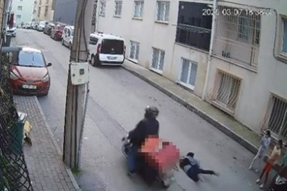 Bursa'nın Kestel ilçesinde sokakta oyun oynayan çocuğa motosikletli kurye çarptı. Kaza anı, çevredeki bir iş yerinin güvenlik kamerasına saniye saniye yansıdı.