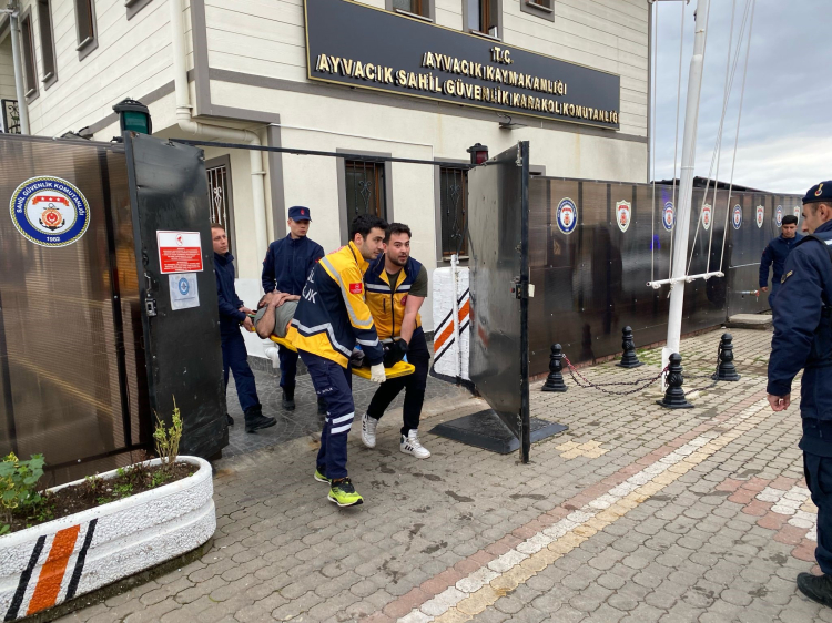 Sahil güvenlik botlarıyla Küçükkuyu beldesindeki karakola getirilen sağ kurtarılmış kaçak göçmenler, burada yapılan ilk müdahalelerinin ardından ambulanslarla Ayvacık Devlet Hastanesi'ne sevk edildi.